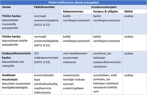 Taulukko 1 Latauspistepäätöksenteko yhtiön hallinnassa olevilla autopaikoilla