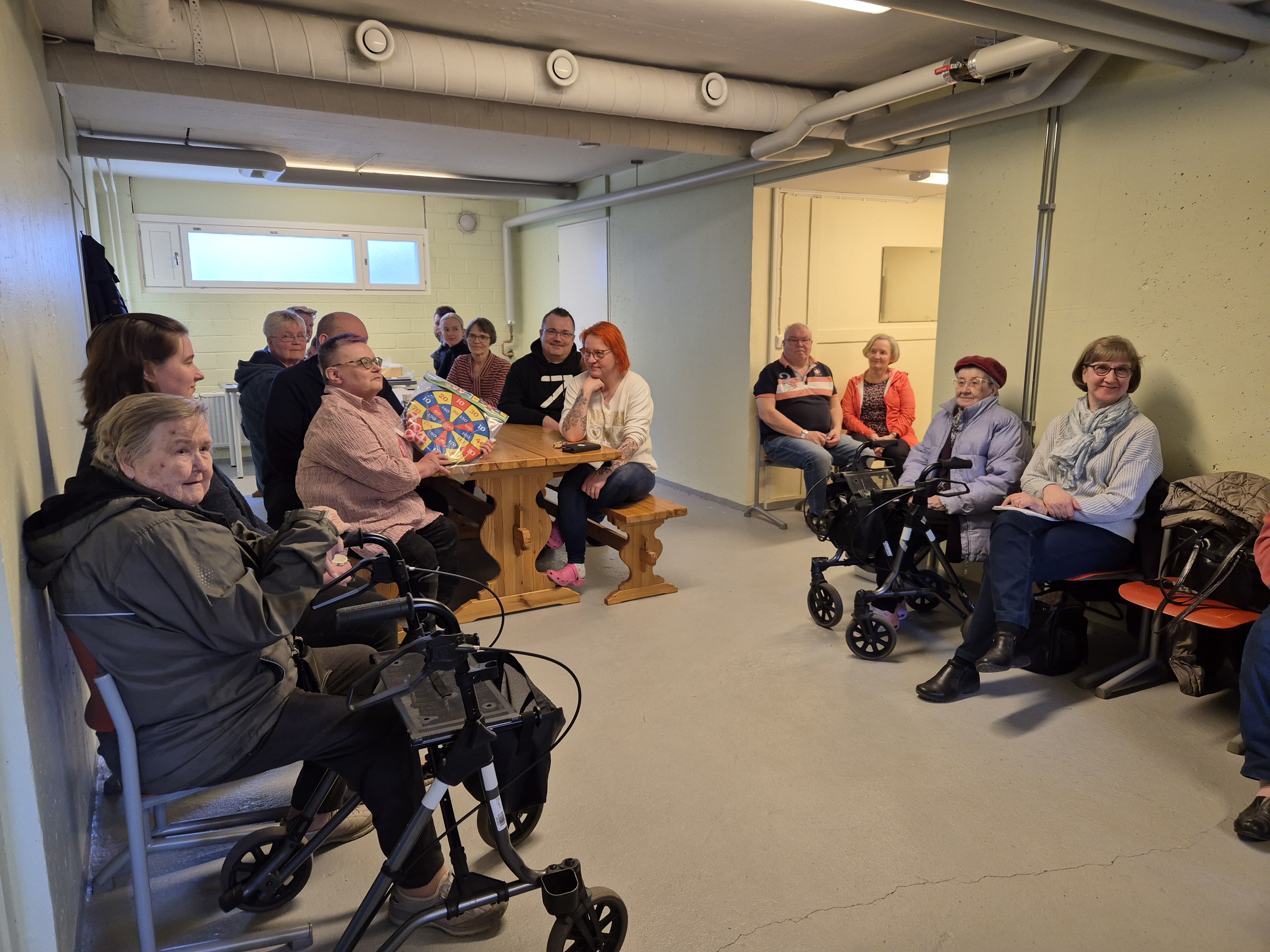 Pilotin ensimmäinen asukasilta pidettiin taloyhtiön kerhotilassa. Jotta paikalle saatiin tavallista enemmän asukkaita, koski kokous pääasiassa 2024 ajankohtaiseksi tullutta hissiremonttia. Urakoitsija kertoi hissiparannusten tarpeellisuudesta ja korjaushankkeen etenemisestä. Ikä- ja muistiystävällinen taloyhtiö -hankkeen työntekijä oli mukana kertomassa yhteisen toiminnan hyödyistä ja miten päästä alkuun. Asukkaat saivat esittää kysymyksiä.