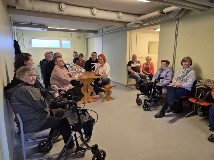 Pilotin ensimmäinen asukasilta pidettiin taloyhtiön kerhotilassa. Jotta paikalle saatiin tavallista enemmän asukkaita, koski kokous pääasiassa 2024 ajankohtaiseksi tullutta hissiremonttia. Urakoitsija kertoi hissiparannusten tarpeellisuudesta ja korjaushankkeen etenemisestä. Ikä- ja muistiystävällinen taloyhtiö -hankkeen työntekijä oli mukana kertomassa yhteisen toiminnan hyödyistä ja miten päästä alkuun. Asukkaat saivat esittää kysymyksiä.